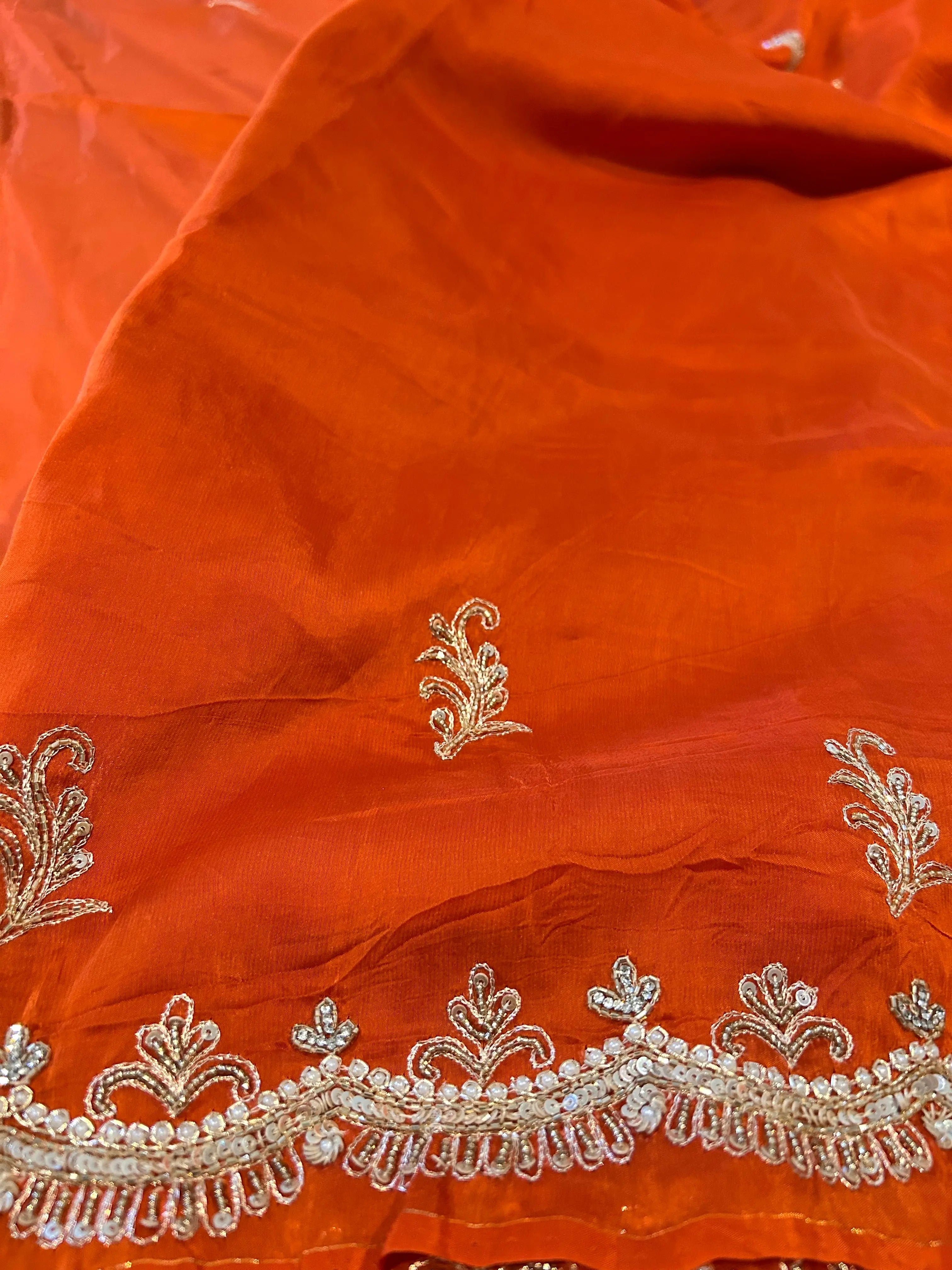 Rusty Orange Color Chinon saree with Kardana work